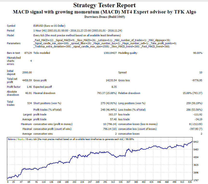 Test Results (Tick EURUSD 1H, 2003.01.01 - 2016.11.24)