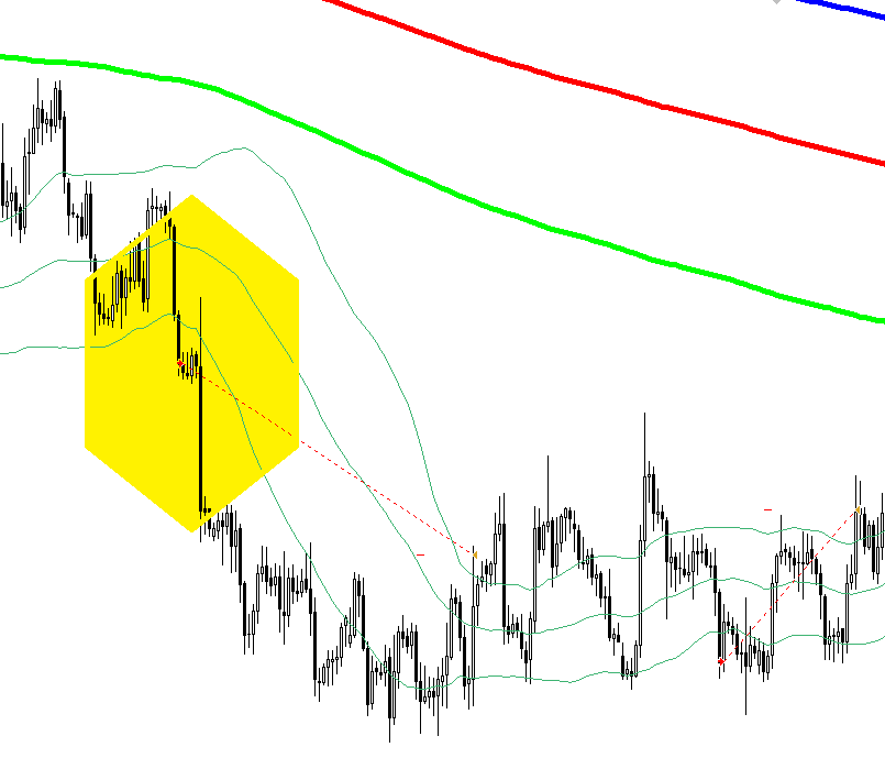 2. Price breaks below bottom BB. Breakout candle has a body size of 30 – 300 pips.