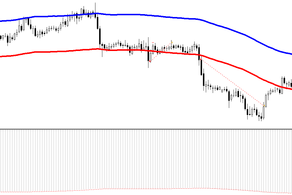 • Envelopes (period 80, deviation 0,4): We will use this indicator to draw a simple tunnel consisting of average high and low price.